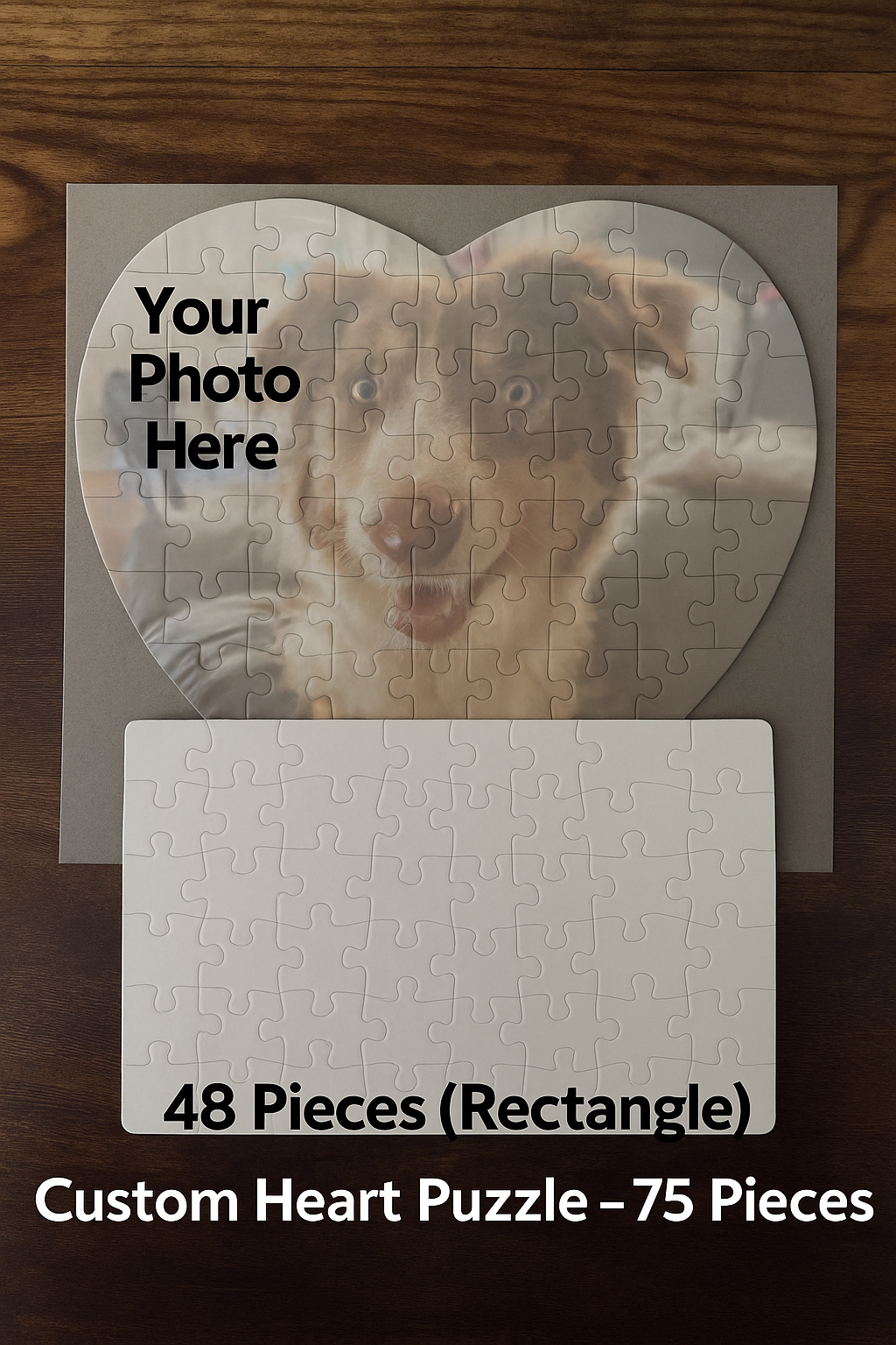 Custom Photo Puzzle Set – 48 & 75 Piece Options | Heart & Rectangle Shapes